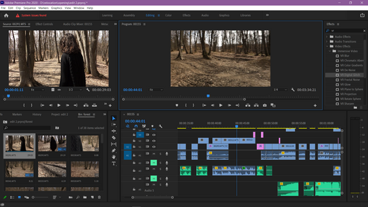 For this first experiment, we used the diegetic sound from the raw footage along with two pieces: Lust Riders by Filmmaker and Distorted Signals_3, an experimental piece by Kenopsia (aka Kuzu). Both pieces hold a certain, uneasy atmosphere, tense and threatening throughout the segment.