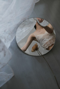 When it comes to the more minimalistic, simple style that I like, a photographer that I tend to draw inspiration from is Ziqian Liu. I really enjoy her photos because of the minimalism, but also the elegance and fluidity of the shapes and lines that she creates. I also love the way that she incorporates flowers and fruits into the compositions, along with mirrors to create illusions. She uses very simplistic, muted color tones that give a more calming effect. Here are some of my favorite works of hers...